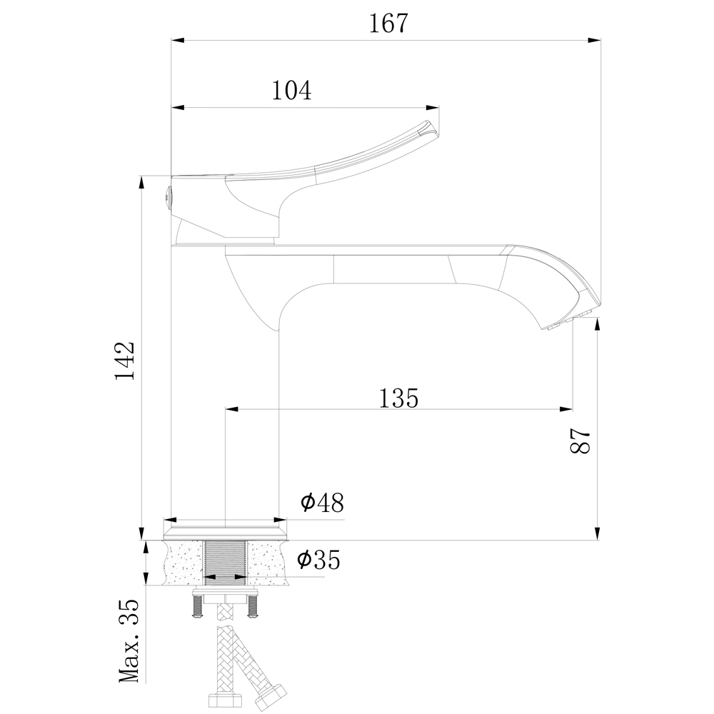 Install on 1 hole basin or Install on counter (if use under-counter basin)
