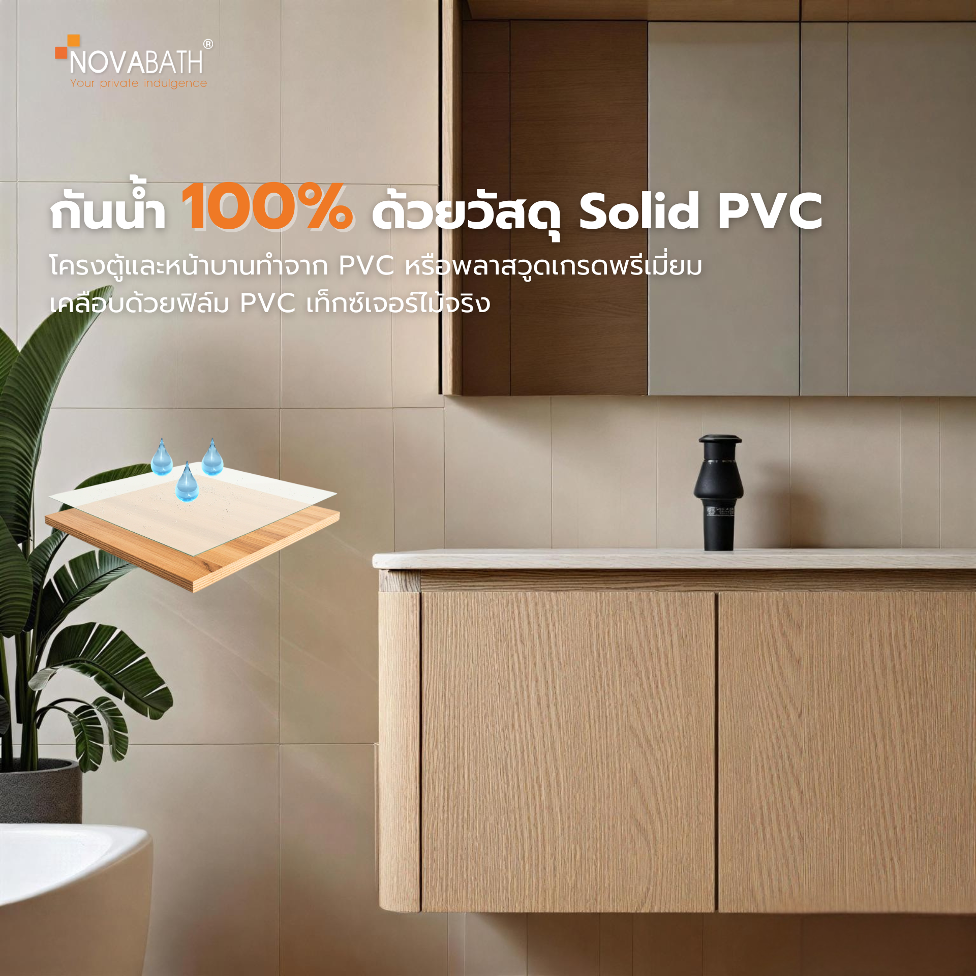 ชุดเฟอร์นิเจอร์ของ NOVABATH เลือกใช้วัสดุที่ทำจาก PVC หรือพลาสวูดเกรดพรีเมี่ยม