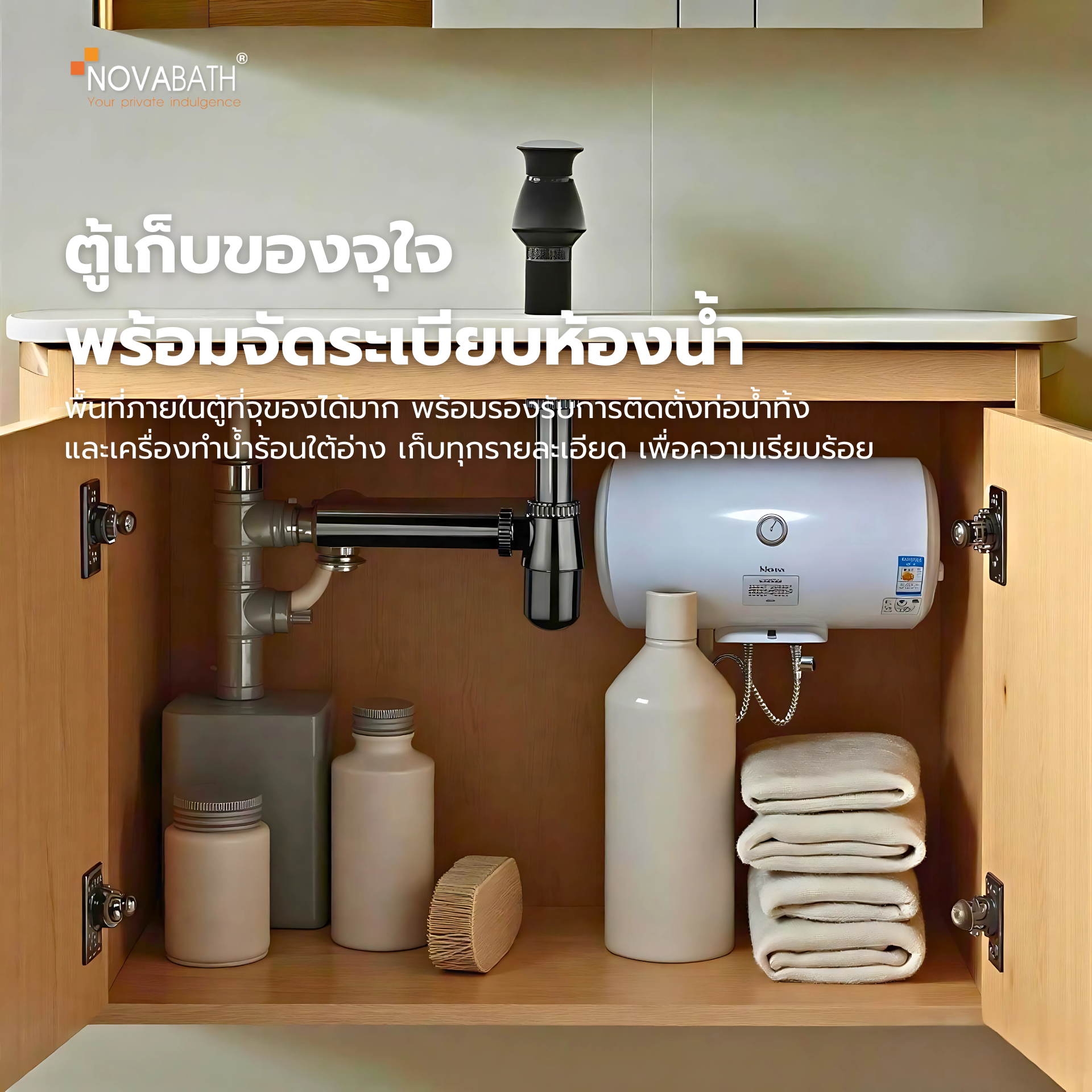 และเครื่องทำน้ำร้อนใต้อ่างเพื่อความเป็นระเบียบและความสวยงาม สะดวกต่อผู้ใช้งานอีกด้วย