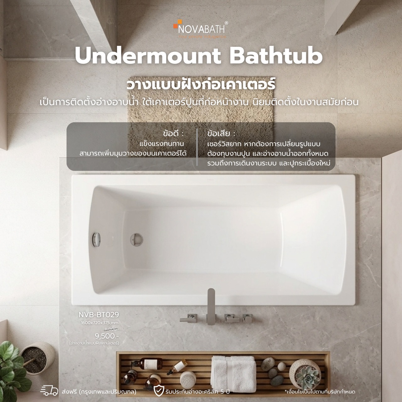 4. Undermount Bathtub: วางแบบฝังก่อเคาน์เตอร์