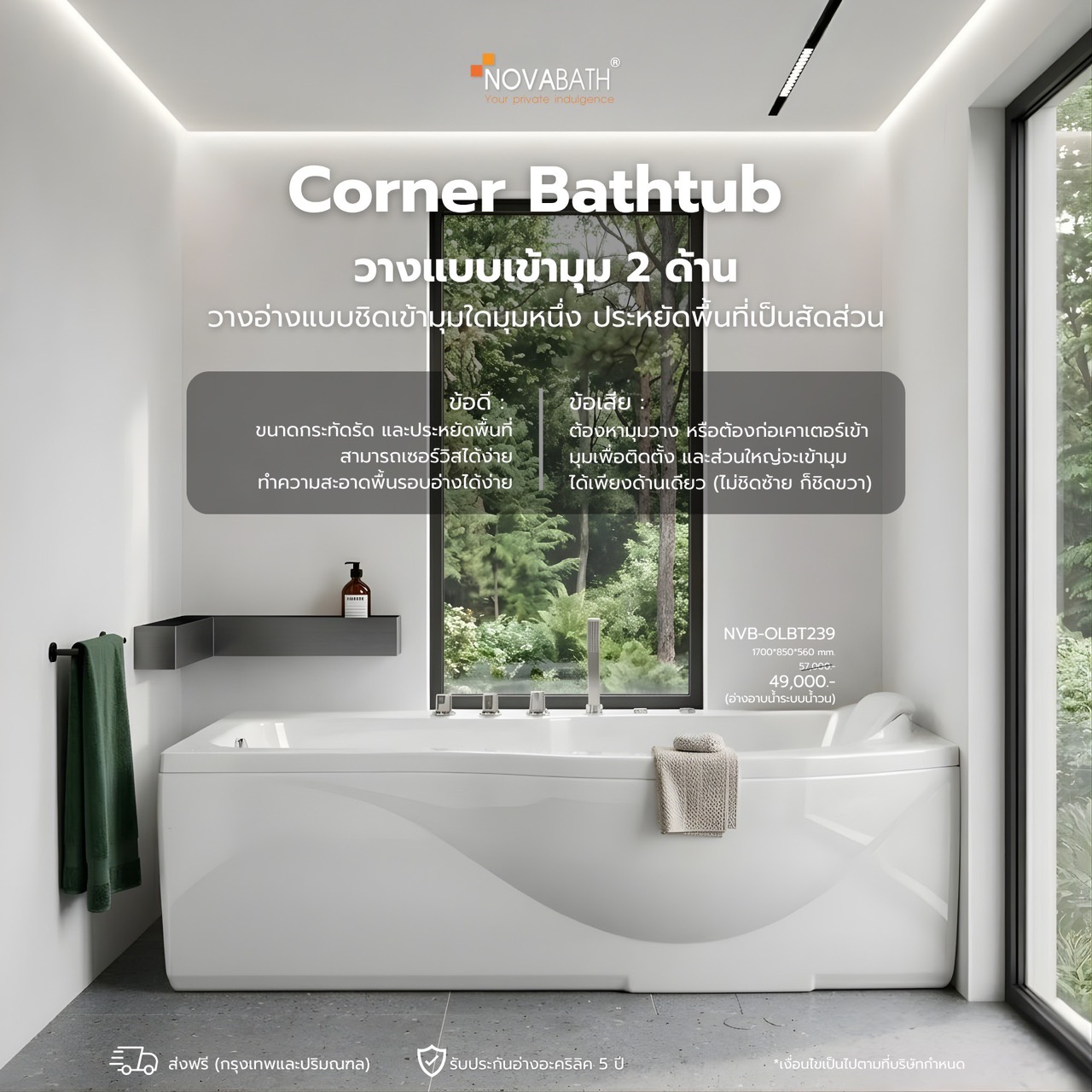 การเลือกรูปแบบการติดตั้งอ่างอาบน้ำให้เหมาะสมกับพื้นที่ ไม่เพียงแต่จะช่วยให้ห้องน้ำดูสวยงามมีสไตล์ แต่ยังส่งผลต่อการใช้งานในระยะยาว ซึ่งแบรนด์ Novabath เรามีอ่างอาบน้ำหลากหลายคอลเลคชั่นที่ออกแบบมาเพื่อรองรับทุกไอเดียการตกแต่งห้องน้ำของคุณ ดังนี้
